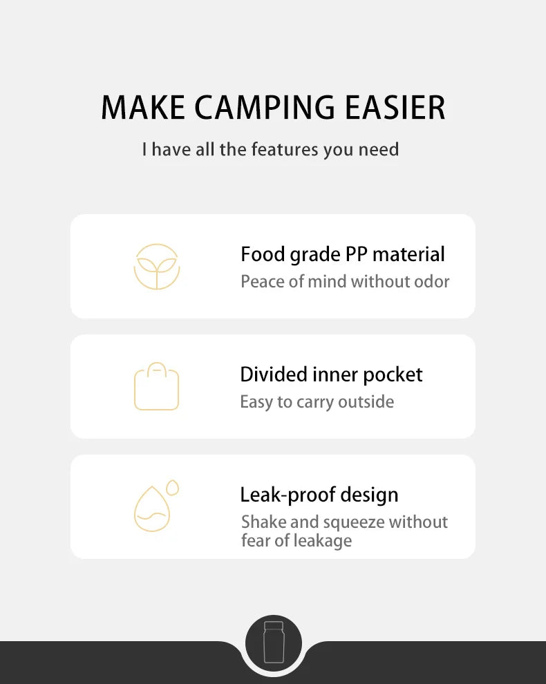 Spice up your camping trips with our Never Lost Spice Bag! Keep your spices organized and dry with its waterproof design. Durable and lightweight, it features 6 separate containers for easy access to all your favorite flavors. Don't let spice chaos ruin your adventures!